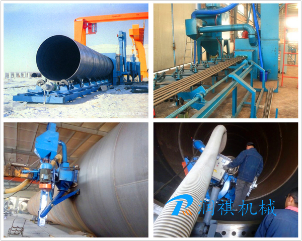 采用液压马达驱动,喷丸清理采用启动马达驱动。 我公司设计的有大管径的内壁抛丸机和直径600mm以下的小型钢管喷丸机等。该设备采用自动抛丸去除表面锈蚀,利用抛丸器抛出的高速